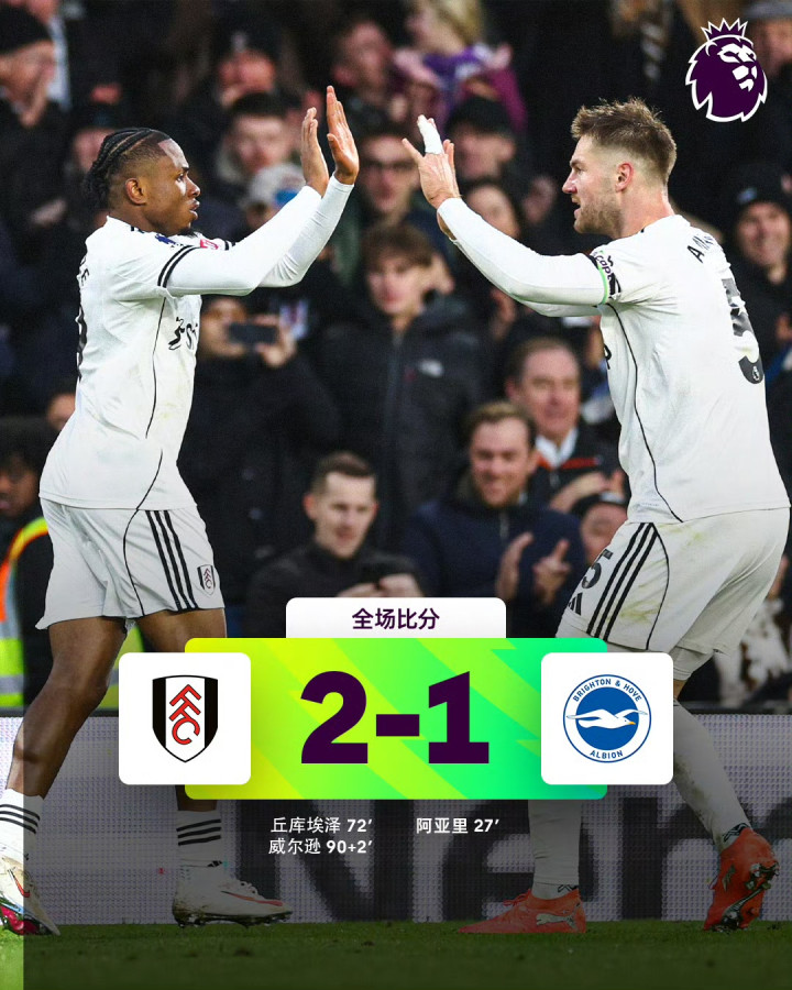 富勒姆2-1布莱顿:威尔逊补时定位球致胜球 ,反转 海鸥