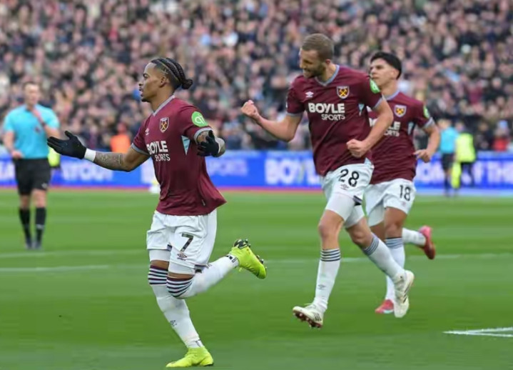 第28分钟,斯卡莱斯造点,鲍文主罚命中,西汉姆联2-0领跑 。